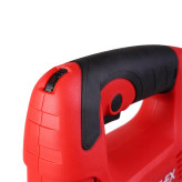 کلید اصلی روی دسته قرار دارد و یک کلید دیمر با 6 سرعت مختلف به منظور کنترل سرعت تیغه (3100-500 دور در دقیقه) برای برش مواد مختلف وجود دارد.